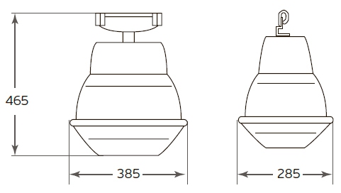 В модификациях светильника доступна установка ламп с цоколем Е40 (100, 150, 250 Вт) и Е27 (70, 125, 150, 250 Вт). Работу ламп поддерживает ЭмПРА, коэффициент мощности ≥0,85. Отражатель формирует светораспределение, соответствующее КСС широкого типа.