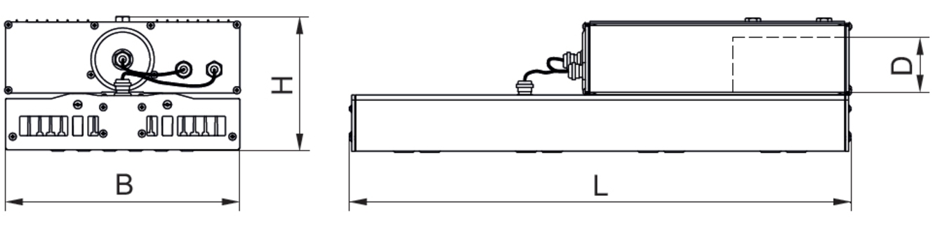 Наращивание мощности изделия с 80 до 240 Вт ведёт к увеличению его длины. Световая отдача, превышающая 100 лм/Вт, позволяет получать световой поток 9327–27 981 лм. Тип светораспределения – широкое. Каждая габаритная версия светодиодного изделия имеет модификацию с нерегулируемым драйвером, драйвером, обеспечивающим регулировку по аналоговому протоколу, и драйвером для автономного управления.