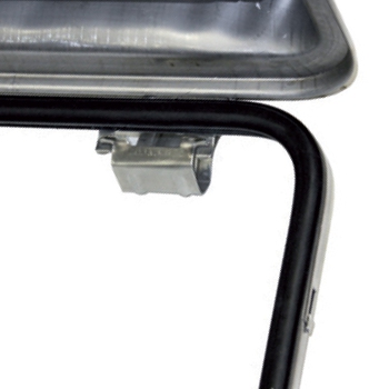 Закалённое силикатное стекло вставлено в металлическую обечайку и уплотнено кремнийорганической резиновой прокладкой. Герметичность внутренней полости, соответствующая степени IP65, соблюдается также применением кабельного ввода. Объединение частей обеспечивают двухзвеньевые замки, которые при подключении питающего кабеля удерживают светопропускающий элемент. Тип металла – нержавеющая сталь.