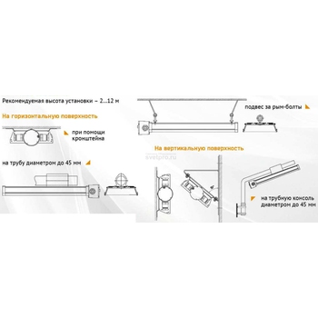 Модельный ряд образуют изделия, оснащенные светодиодными модулями, имеющими мощность: 20–200 Вт (2500–21 000 лм) и источником питания. Цветовая температура базовой версии – 4500 К, доступны: 2700–6000 К. КСС типа Д можно изменить на тип К, Г, Ш. Клеммы подключения защищены вводной коробкой. Номиналы напряжения: 176÷264 АС; 250÷370 DC; 10÷60 AC/DC.