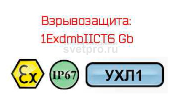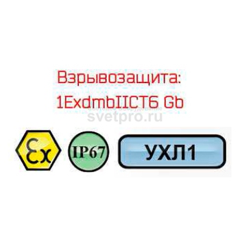 Взрывонепроницаемость оболочки светильника ДПП80 обеспечена элементами корпуса, изготовленными из алюминиевого профиля (нанесено порошковое окрашивание) и ударопрочным поликарбонатным рассеивателем. Степень защиты соответствует IP67, исполнение по взрывозащите – 1ExdmbIIСT6 Gb.