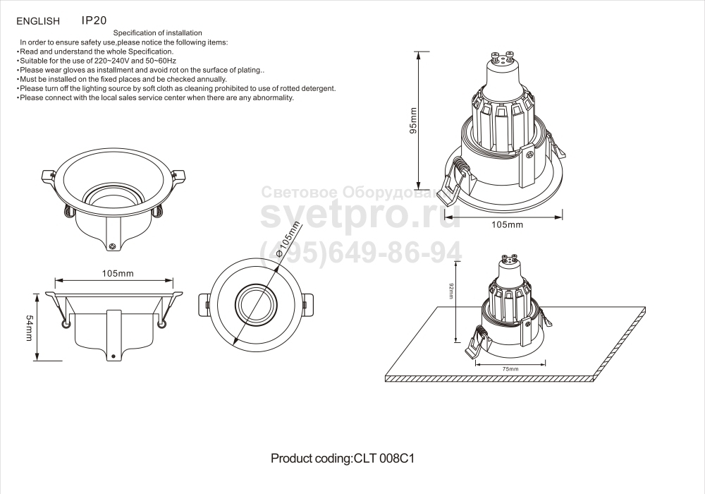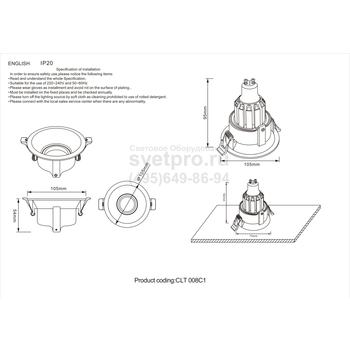 Светильник встроенный Crystal Lux CLT 008C1 BL