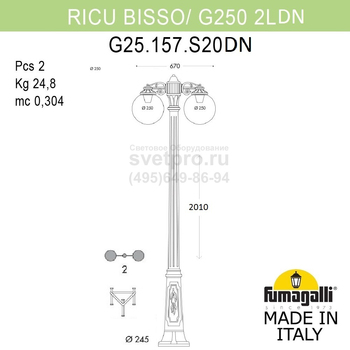 Садово-парковый фонарь FUMAGALLI RICU BISSO/G250 2L DN G25.157.S20.AXE27DN