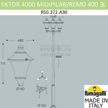 Парковый фонарь FUMAGALLI EKTOR 4000/MIDIPILAR/REMO 3L R50.372.A30.AXE27