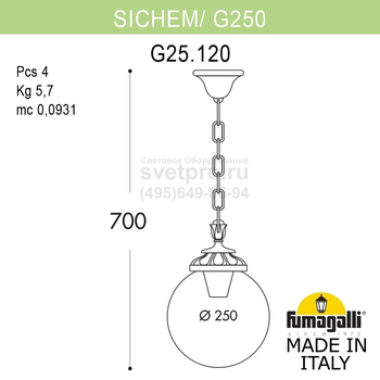 Подвесной уличный светильник FUMAGALLI SICHEM/G250. G25.120.000.AYE27