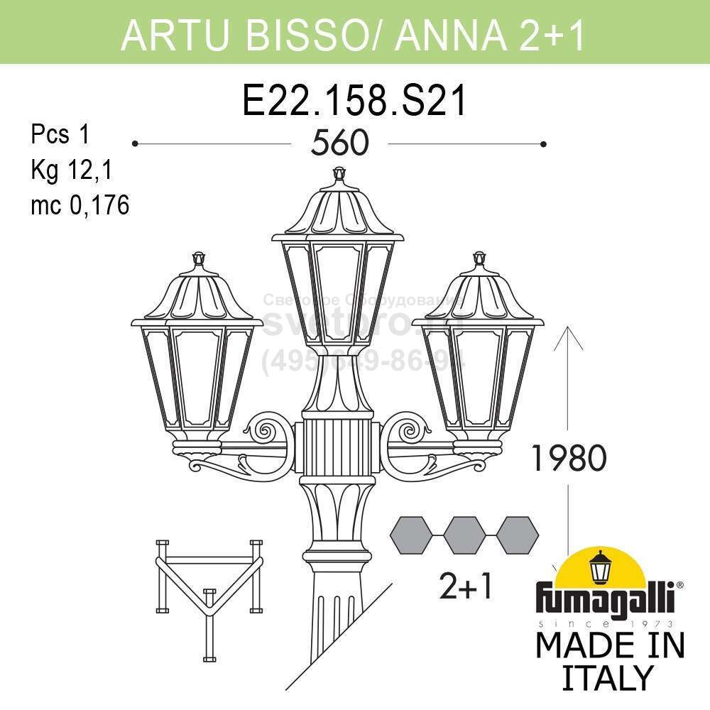 Садово-парковый фонарь FUMAGALLI ARTU BISSO/ANNA 2+1 E22.158.S21.AYF1R