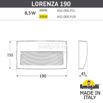 Светильник для подсветки лестниц накладной FUMAGALLI LORENZA 190 AS2.000.000.WXK1L