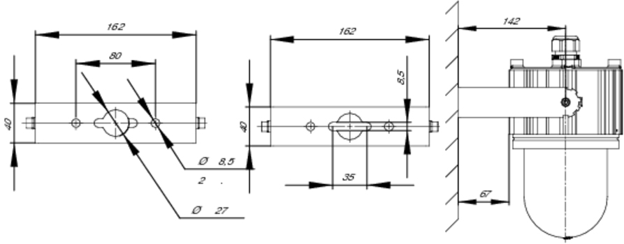 Модель, выполненная в типоразмере 9, предназначена для прямого ввода кабеля и тупикового монтажа. При установке используется поворотный подвес.