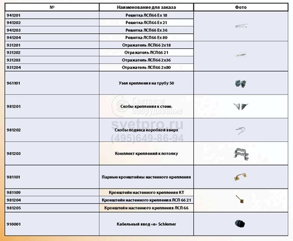 Пример записи для заказа - 126041 Светильник ЛСП66 Ех 1х18 Табло