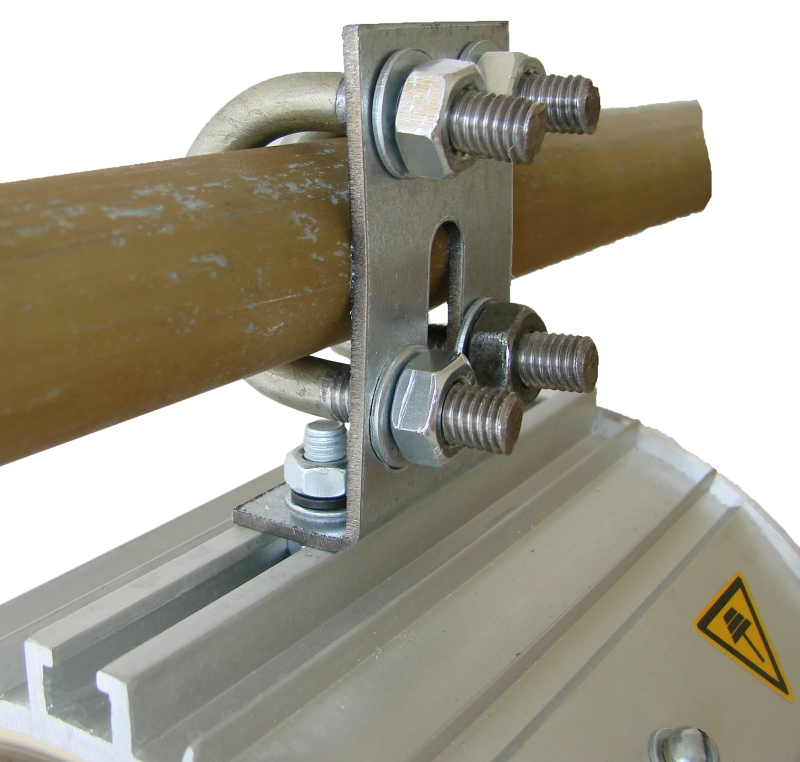 Светильник устанавливается подвесным способом на трубу и крюк, фиксируется настенно или прикреплением к потолку. Работы упрощает наличие креплений, входящих в базовый комплект или включаемых в комплектацию по заказу. Транзитный монтаж реализуется при дополнении базовой модификации вторым кабельным вводом.