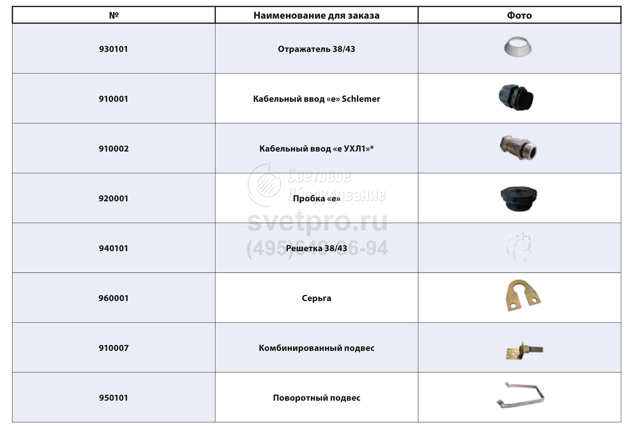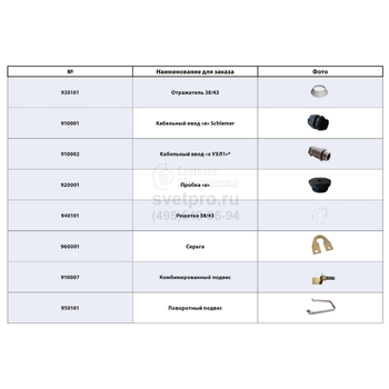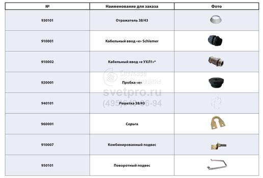 Дополнительная комплектация к светильникам, поставляемая по отдельному заказу