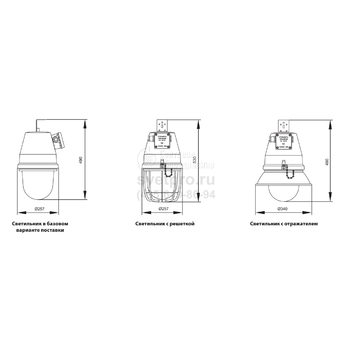 Для установки лампы в модификациях предусмотрен резьбовой патрон Е27 или Е40 (ДРЛ, КЛЛ, ЛОН, ДРИ, ДНаТ), патрон для ламп со штырьковым цоколем (КЛЛ) и версии для индукционных ламп без патрона. Мощность источника света 18–300 Вт. Приоритеты при выборе изделия учитываются наличием изделий с клеммами WAGO, ЭПРА и ЭПРА немедленного перезажигания, а также учет специфики температуры климатической зоны и эксплуатационные параметры ламп: от минус 20 (-45; -60)°С до +40°С.