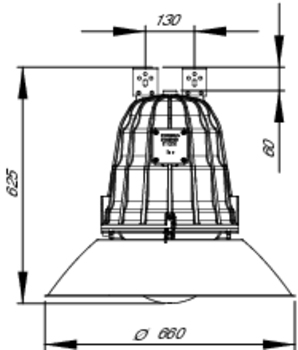 В базовом варианте светильник поставляется с двумя универсальными скобами подвеса, без решетки и отражателя, с одним кабельным вводом для тупикового монтажа.