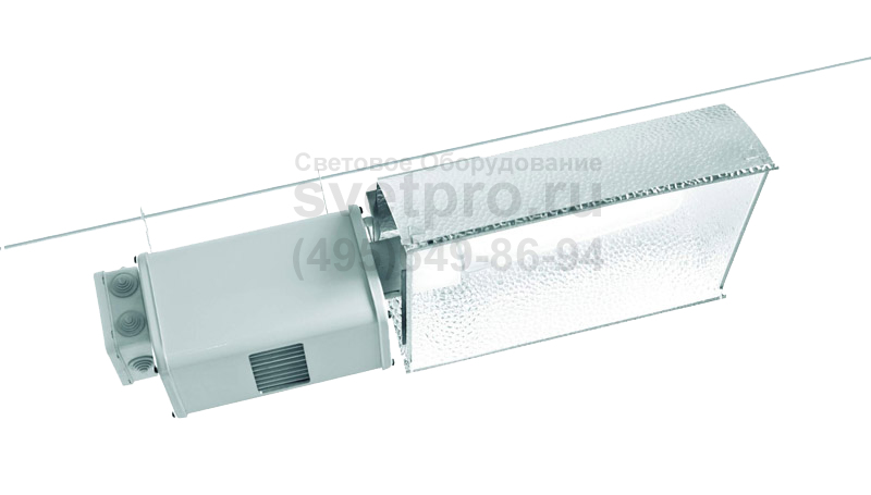 Лампа ДНаТ мощностью 400 и 600 Вт выбрана источником света в модификациях ОП. В комплектацию изделия входит блок с ЭПРА, присоединенный к корпусу светильника винтами. Аппарат электронного типа повышает длительность работы ламп, увеличивает коэффициент мощности (cos φ≥0,96) и позволяет выполнять регулировку света (опция доступна с соответствующей моделью ЭПРА). Защита ПРА составляет IP54. Над лампой установлен защитный кожух, защищающий от капель и мелких твердых образований (IP21). Эффективность применения натриевых ламп заключается и в высокой световой отдаче – 135 лм/Вт.