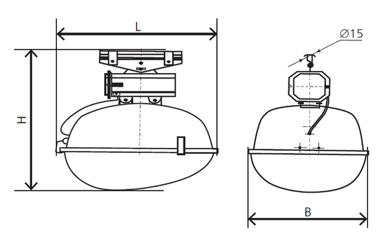 Светильник ЖСУ/РСУ рекомендуется устанавливать на несущем тросе. Другие положения тоже возможны