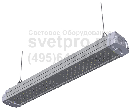 Подвесной индустриальный светодиодный светильник, мощностью потребления 86 Вт, позволяет добиться необходимого по санитарным нормам и технологическим требованиям уровня освещения в помещениях с высокими потолками.