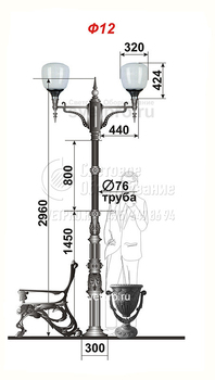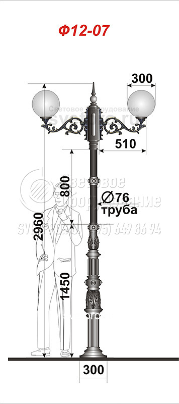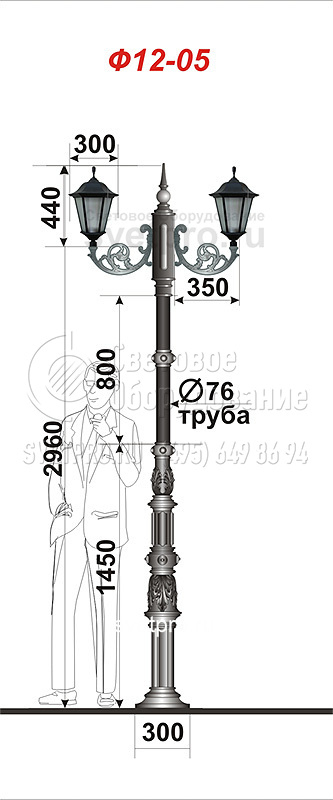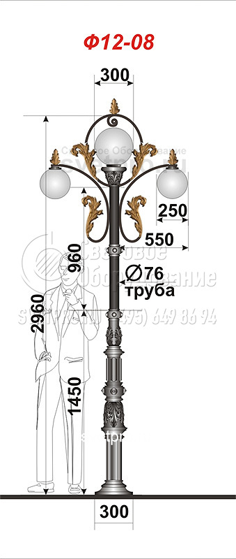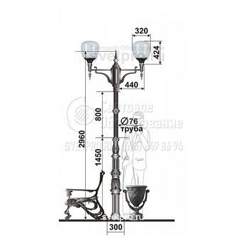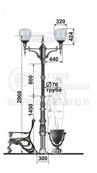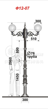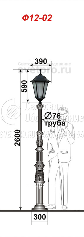 - Высота фонаря: 2600-2960мм (в зависимости от варианта исполнения)