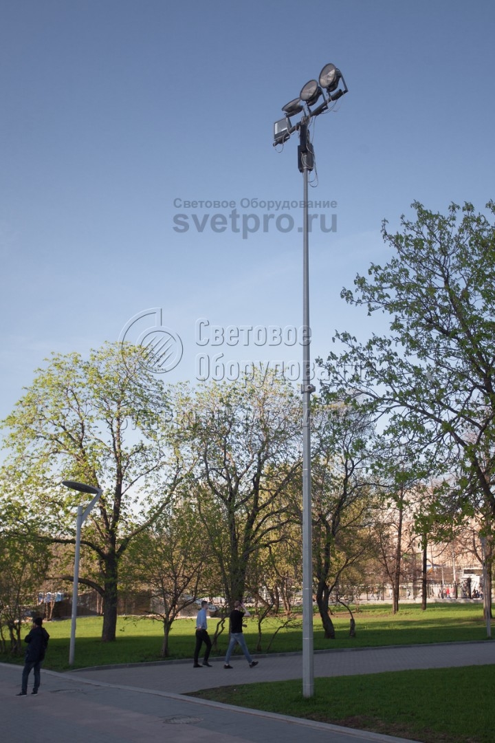 Изготовление опор выполняется из стального проката, сгибаемого прессом в конус с восемью гранями. Края изделия свариваются двойным швом, образуя внутри полость для подвода питающего провода к размещаемым сверху светильникам. Установка прожекторов выполняется на кронштейнах. Защита изделия от коррозии обеспечивается обработкой металла горячим цинкованием. Возможна дополнительная покраска для улучшения декоративных свойств.