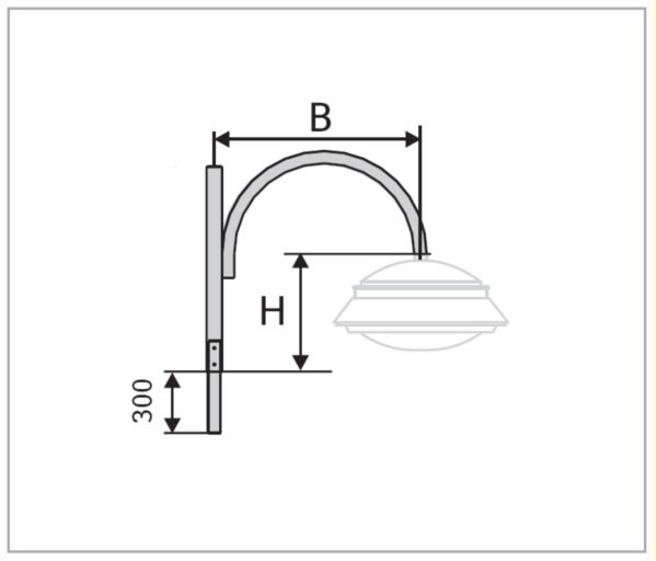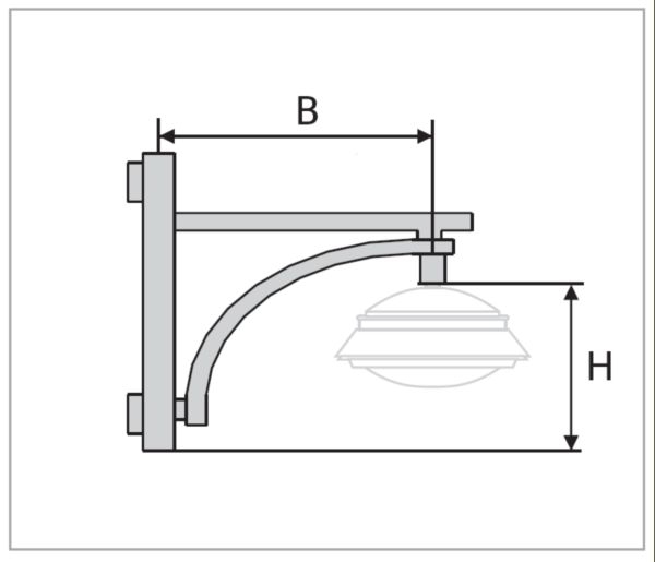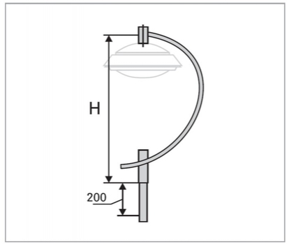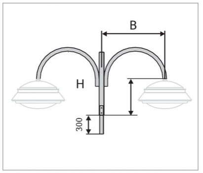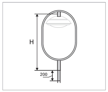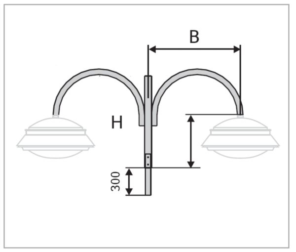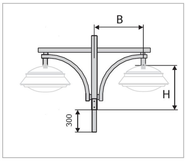 Стандартный посадочный размер кронштейна для установки на опору — 50 и 60 мм. Посадочный размер может быть изменен в зависимости от типа и высоты опоры.