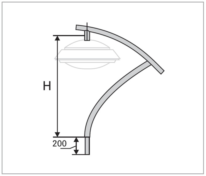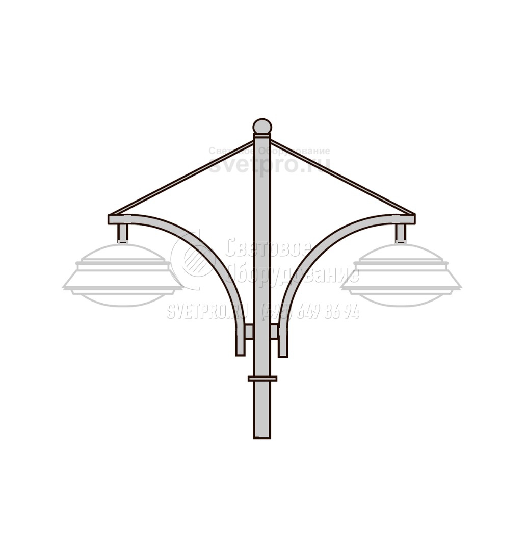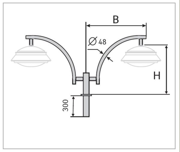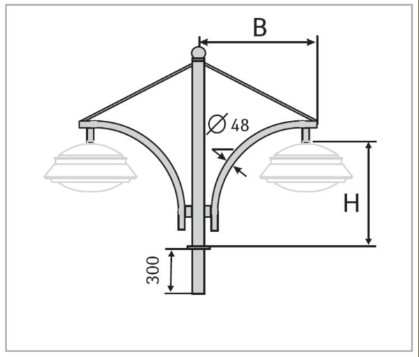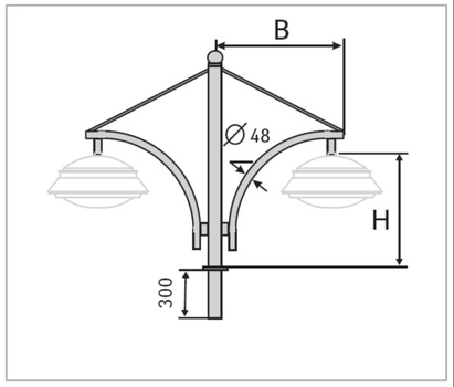 Стандартный посадочный размер кронштейна для установки светильника — 48 мм. Посадочный размер может быть изменен в зависимости от типа устанавливаемого светильника.