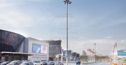 Выбор осветительного оборудования, применяемого для освещения площадок перед торговыми центрами, зависит от места расположения объекта. Однако, неизменным остается эстетичность, удобство обслуживания, длительный срок службы, безопасность и энергоэффективность. В качестве опорных конструкций, применяются несиловые опоры, высотой 4-10 м, с кронштейнами для светильников с МГЛ или ДНаТ. При освещении больших площадок, наиболее целесообразно применение прожекторных мачт со стационарной или с мобильной короной. Последние при этом позволяют производить обслуживание прожекторов без применения спецтехники.