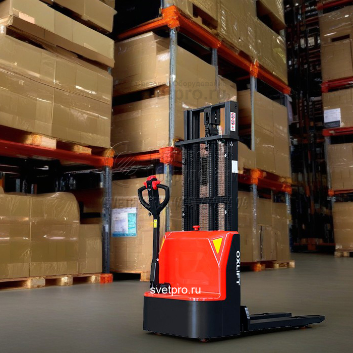 Этот штабелер оснащен надежным электрическим приводом, который обеспечивает плавное и стабильное перемещение грузов, а также подъем и опускание. Оператор может легко управлять штабелером с помощью удобных рукояток управления, что обеспечивает безопасность и эффективность работы.