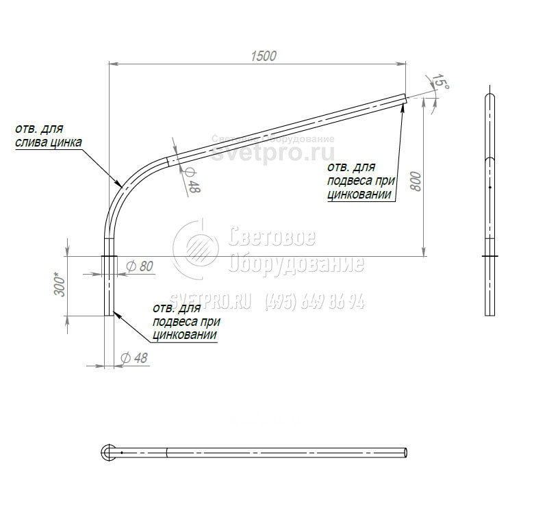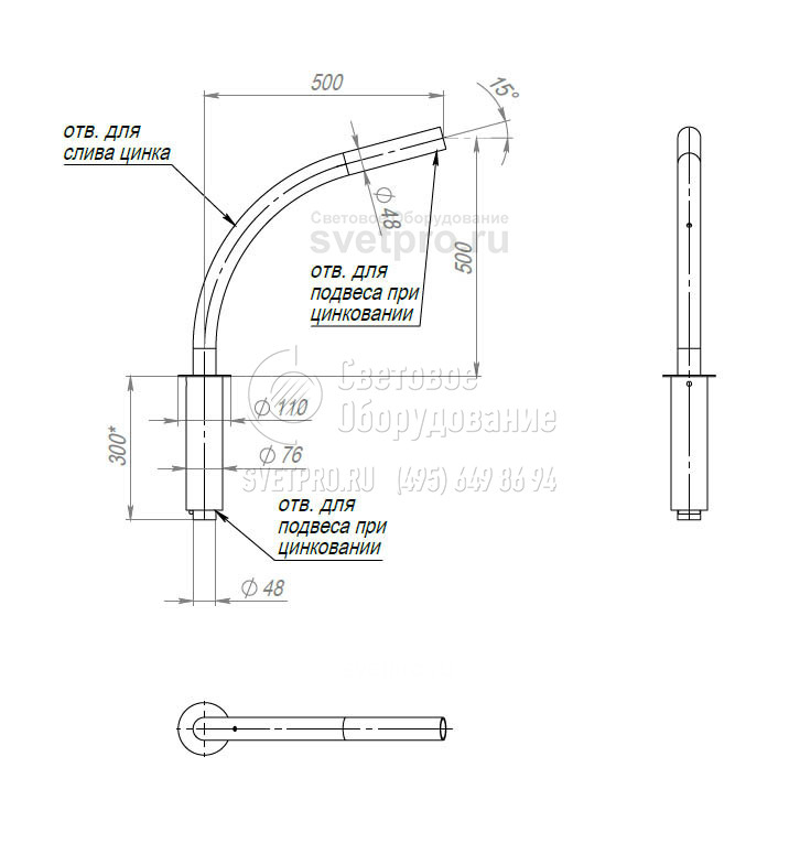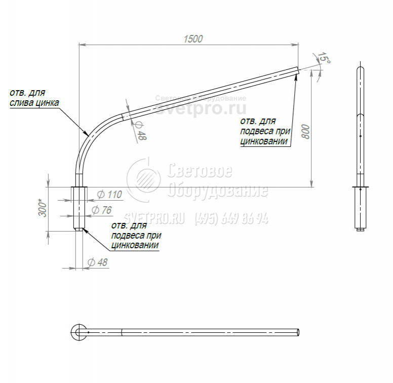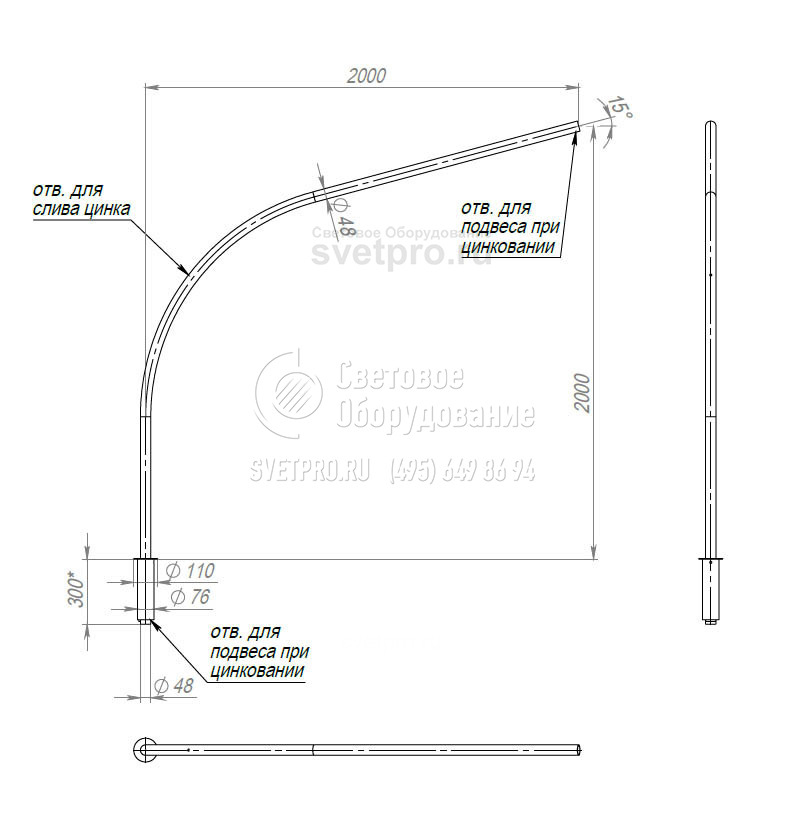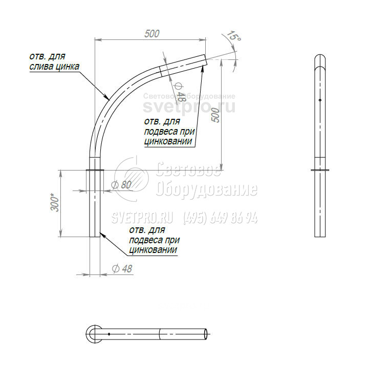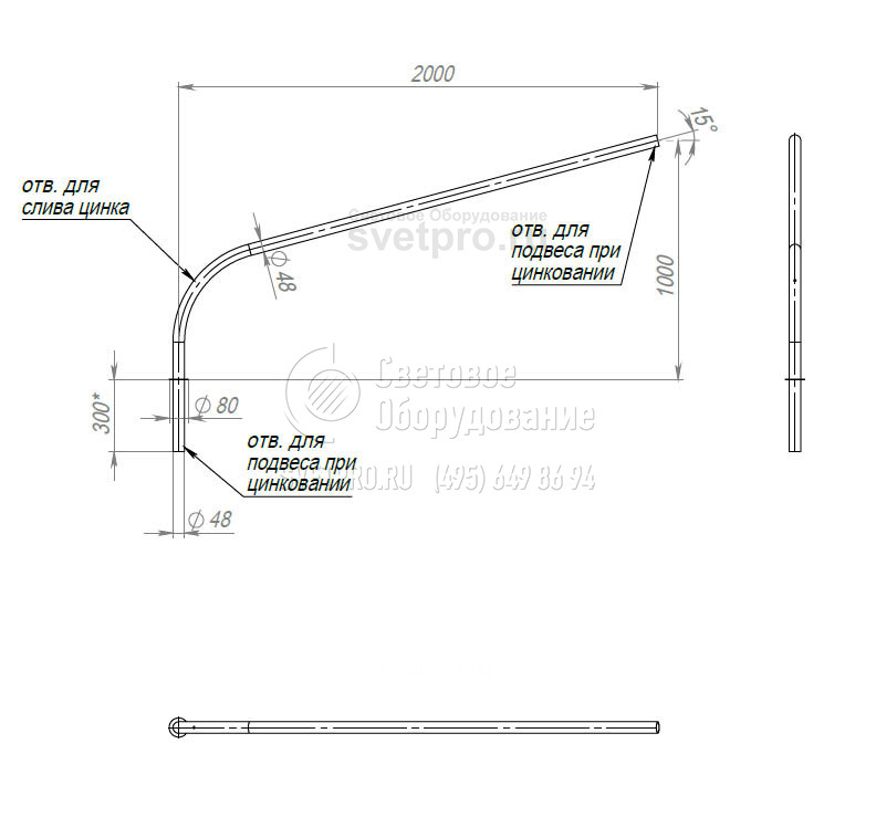 Для монтажа светильников и прожекторов на оголовке используются кронштейны. Они отличаются по длине и высоте рожка, количеству рожков и их взаимному углу относительно друг друга.