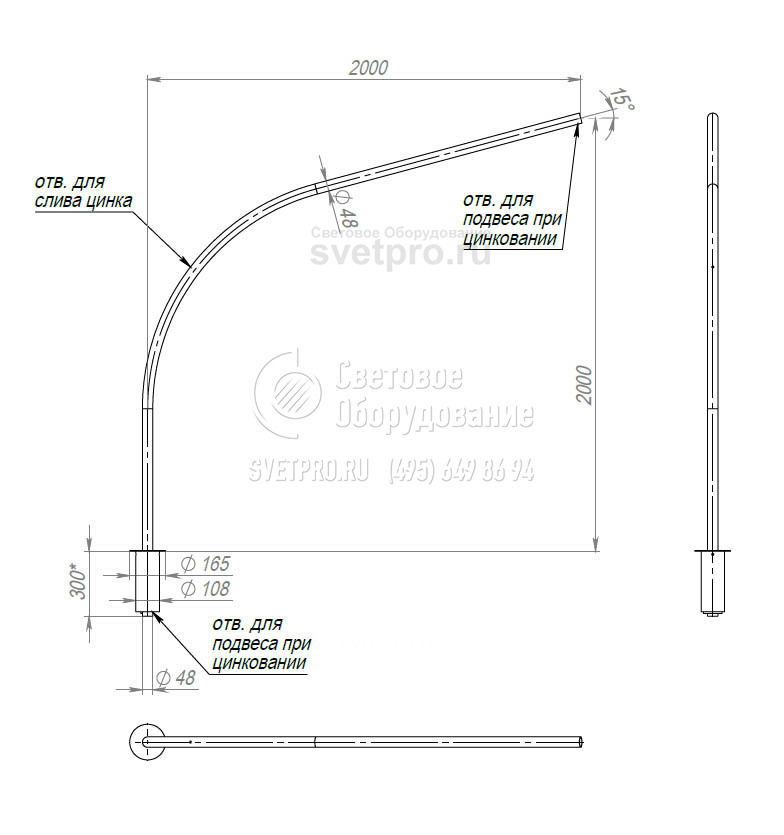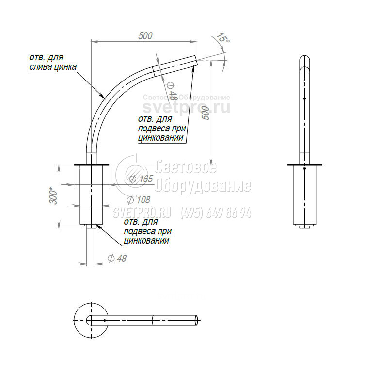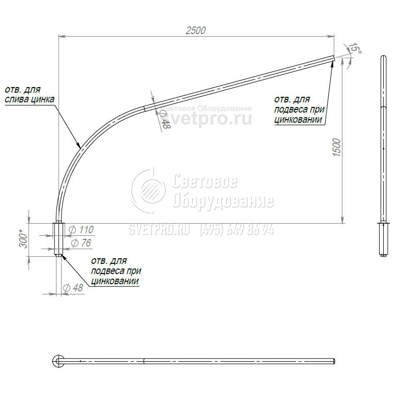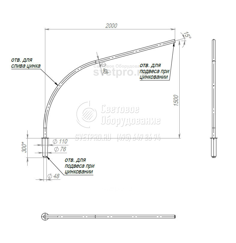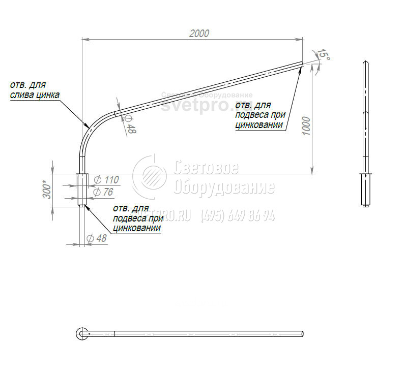 Для монтажа светильников и прожекторов на оголовке используются кронштейны. Они отличаются по длине и высоте рожка, количеству рожков и их взаимному углу относительно друг друга.