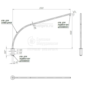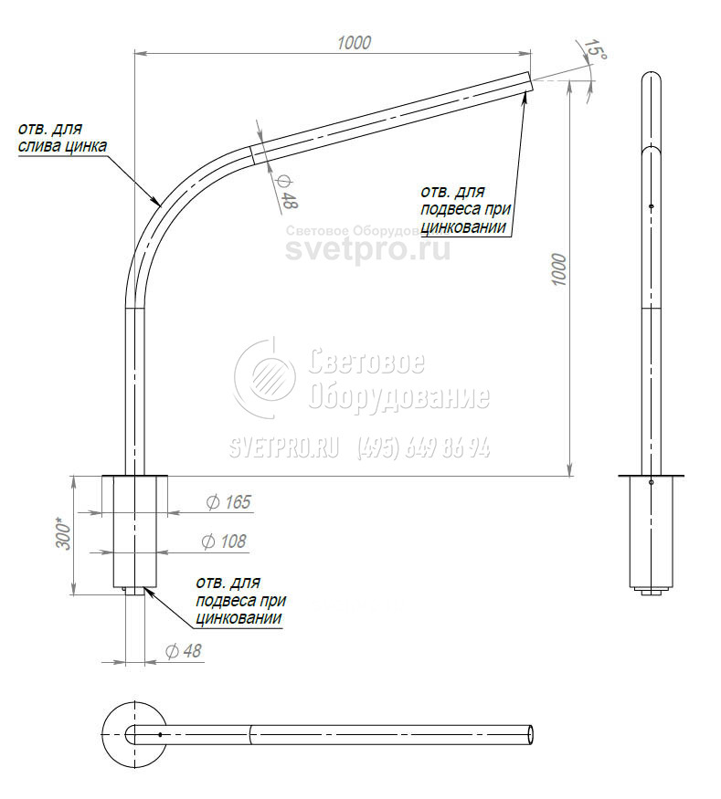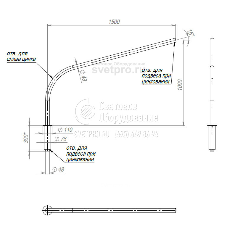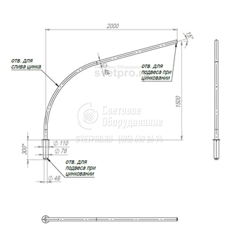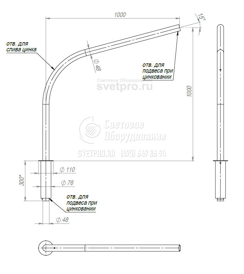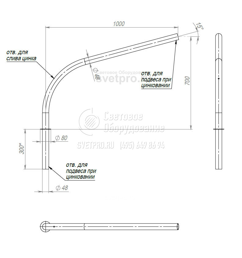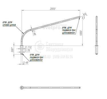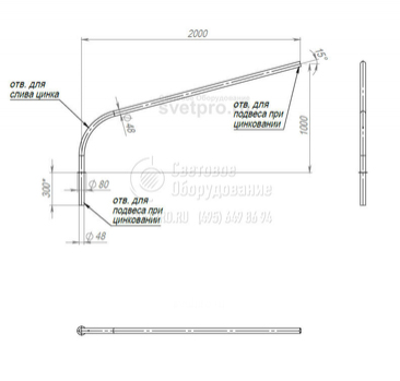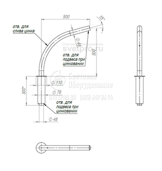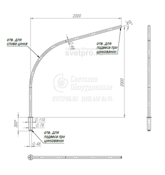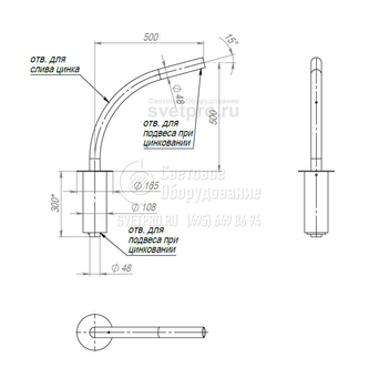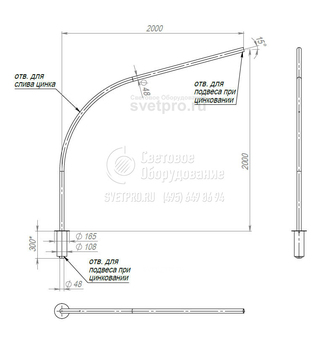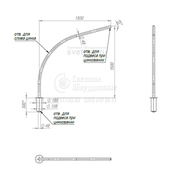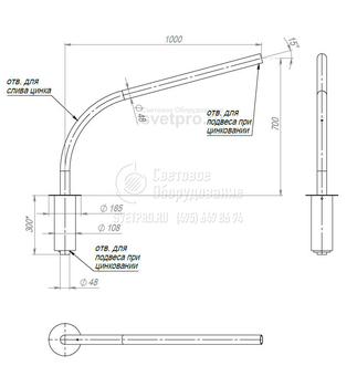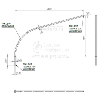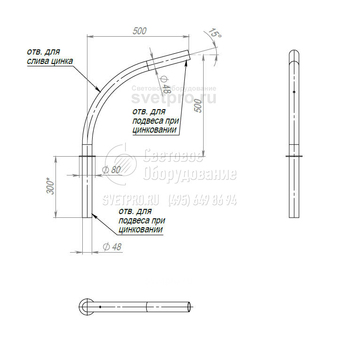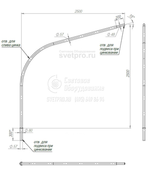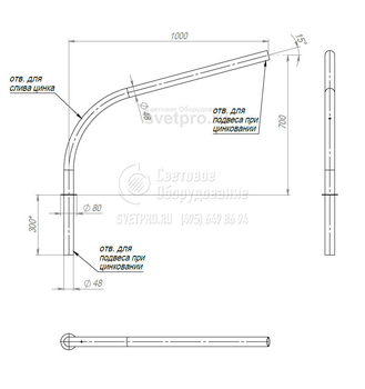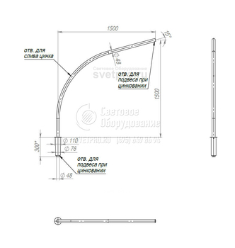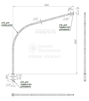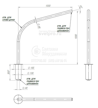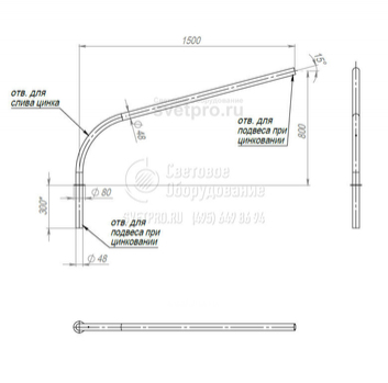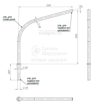 К1К - радиусные однорожковые консольные кронштейны. Предназначены для установки приборов искусственного освещения на опоры или прочие конструкции. Расчетная температура района эксплуатации в стандартном исполнении ≥ -45С°. Покрытие кронштейнов выбирается в зависимости от условий эксплуатации и эстетических соображений. Кронштейны защищаются от коррозии методом горячего цинкования ГОСТ 9.307. Этот вид покрытия не является декоративным и имеет только функциональное назначение. При необходимости придания кронштейнам определенного цвета или получения равномерного однотонного покрытия дополнительно после горячего цинкования на кронштейны наносится полимерно-порошковое покрытие.