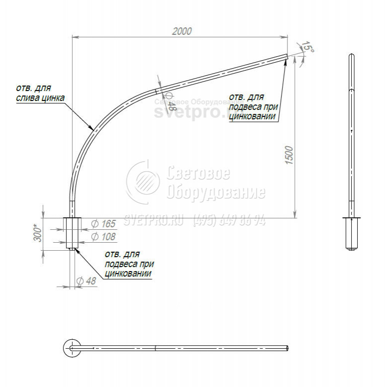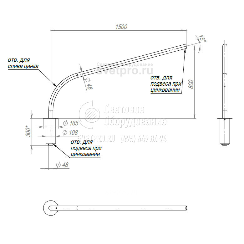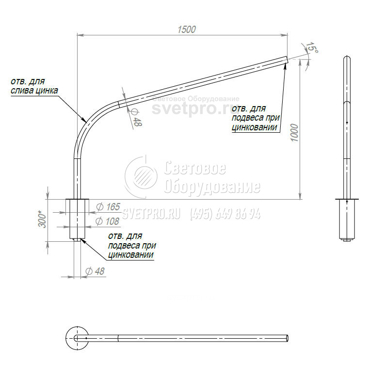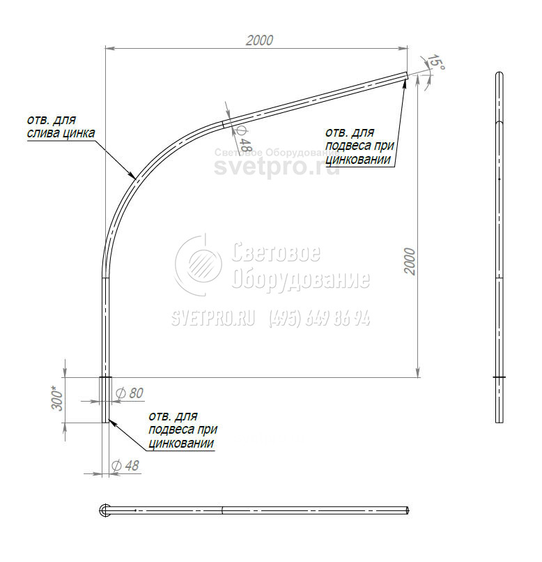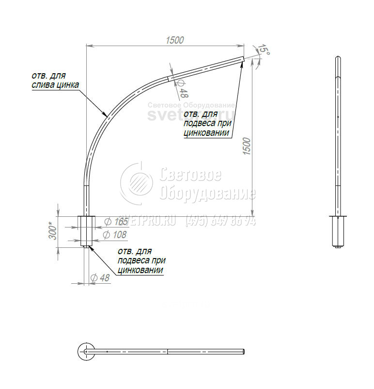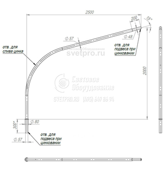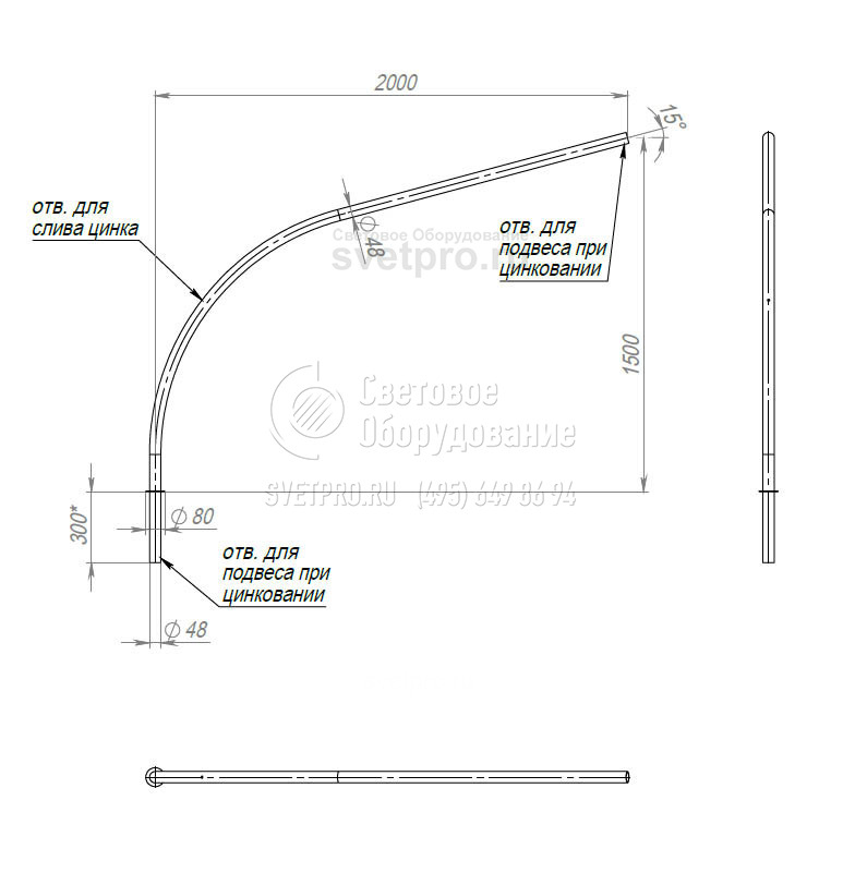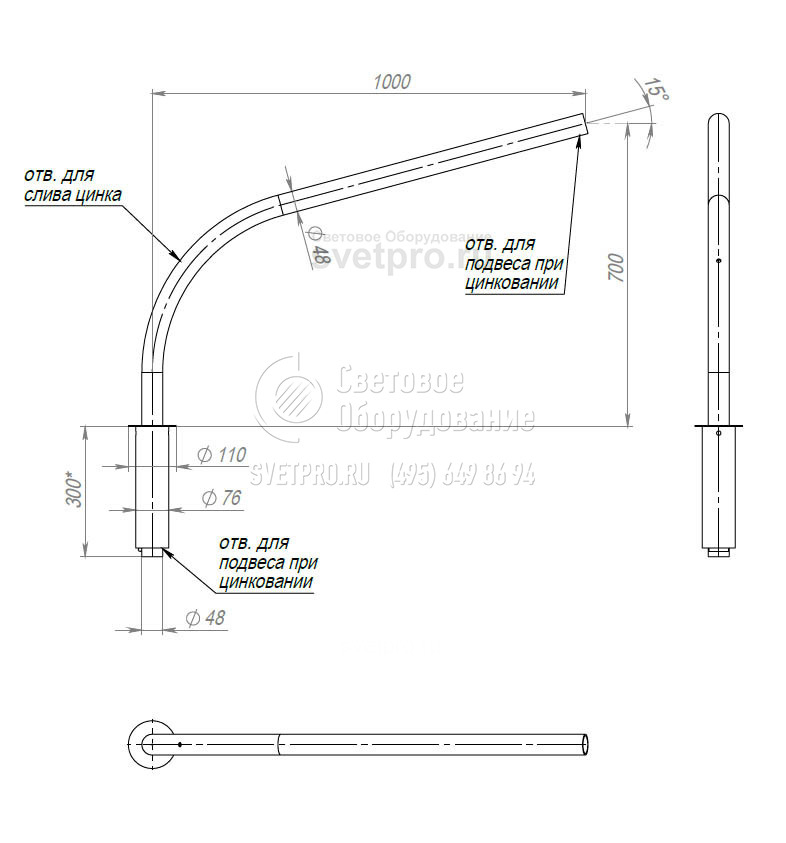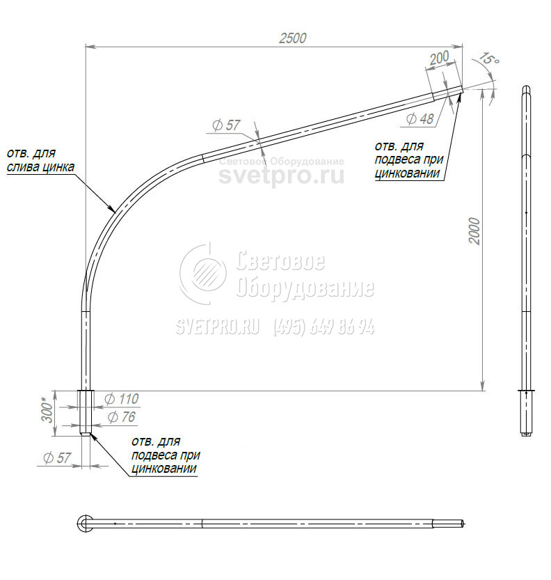 К1К - радиусные однорожковые консольные кронштейны. Предназначены для установки приборов искусственного освещения на опоры или прочие конструкции. Расчетная температура района эксплуатации в стандартном исполнении ≥ -45С°. Покрытие кронштейнов выбирается в зависимости от условий эксплуатации и эстетических соображений. Кронштейны защищаются от коррозии методом горячего цинкования ГОСТ 9.307. Этот вид покрытия не является декоративным и имеет только функциональное назначение. При необходимости придания кронштейнам определенного цвета или получения равномерного однотонного покрытия дополнительно после горячего цинкования на кронштейны наносится полимерно-порошковое покрытие.