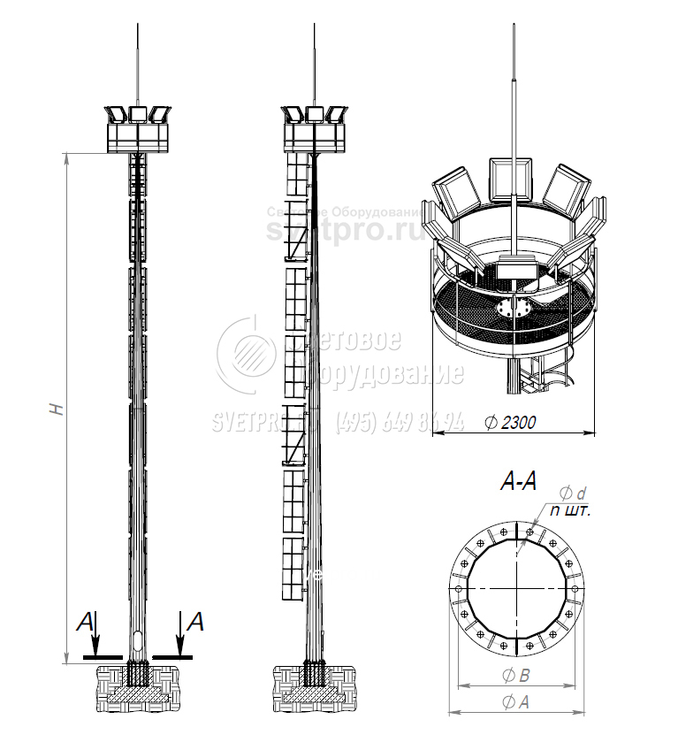 Мачты с неподвижной осветительной рамой имеют высокую прочность и несущую способность, большую высоту и стабильность, долгий срок службы и надежную защиту от коррозии.