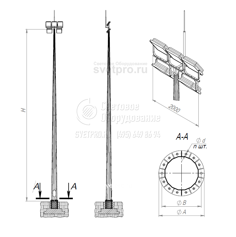 ВМОН Высокомачтовые граненые опоры со стационарной короной