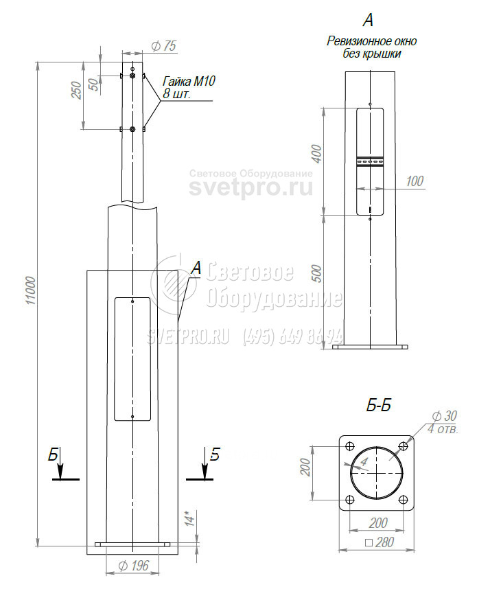 Тип | Н, м | D1, мм | D2, мм | А/B, мм | d, мм | n, шт | b, мм | Посадочное место кронштейна | Масса, кг | Рекомендуемый фундаментный блок | Нагрузки на фундамент | ||