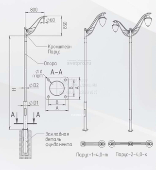 Итоговая высота складывается из высоты опоры и высоты кронштейна (указана в таблице).