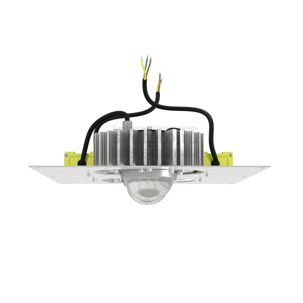 С целью сохранения параметров светильника по высоте источник питания закрепляется на основании из алюминия около основного корпуса.