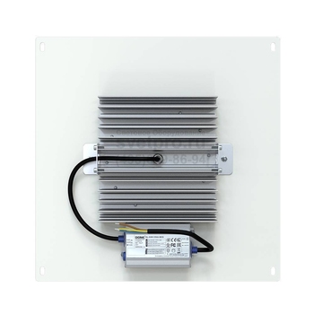 С целью сохранения параметров светильника по высоте источник питания закрепляется на основании из алюминия около основного корпуса.