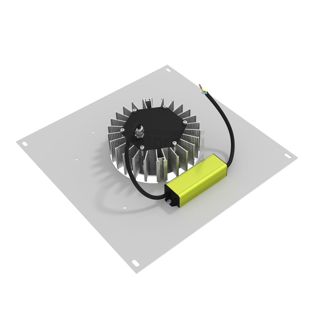 С целью сохранения параметров светильника по высоте источник питания закрепляется на основании из алюминия около основного корпуса.