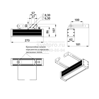 • простота и оперативность монтажа за счет специальных кронштейнов с возможностью установки прибора под заданным углом.