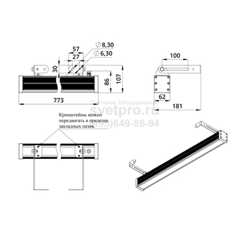 • простота и оперативность монтажа за счет специальных кронштейнов с возможностью установки прибора под заданным углом.