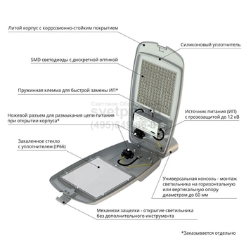 • возможность подключения к различным системам управления (NЕМА и Zhaga разъемы – опционально);