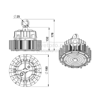 Габаритные размеры с отражателем: | Ø342×283 мм |