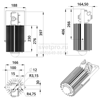 • Корпус выполнен из анодированного алюминия. Он имеет большую площадь поверхности за счет наличия ребер и изгибов. В силу такой конструкции корпуса обеспечивается эффективное отведение тепла от диодов.