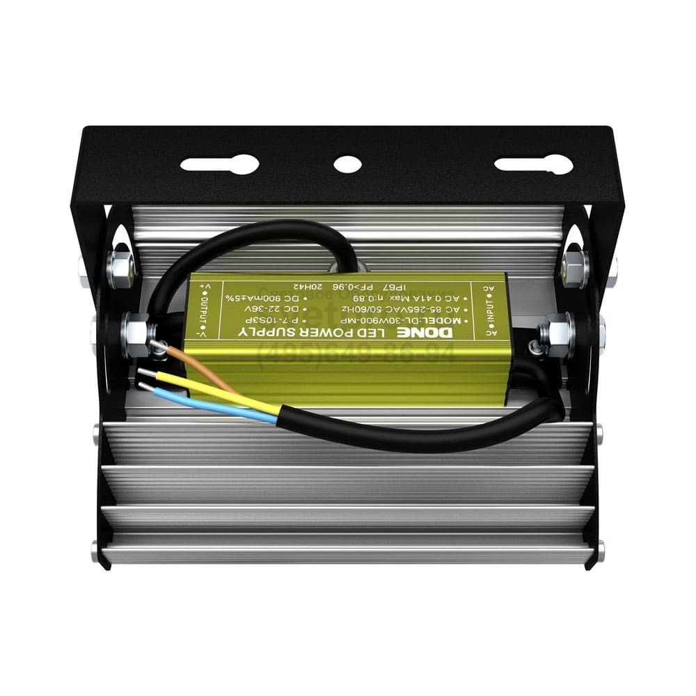 В данной серии светильников представлен источник питания наружного исполнения. В корпус из металла залит теплопроводящий компаунд, благодаря чему элементы источника питания не перегреваются и он работает дольше.