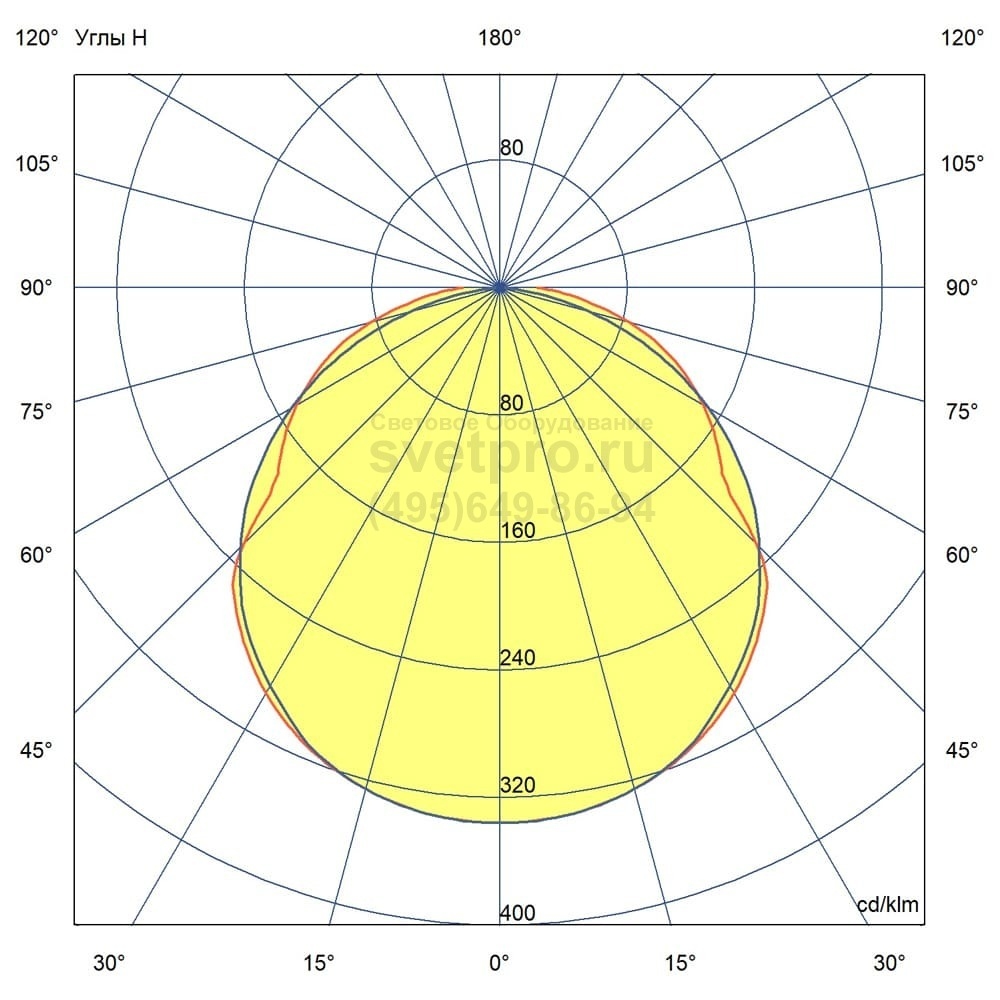 Тип кривой силы света: | Косинусная |