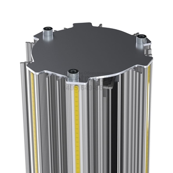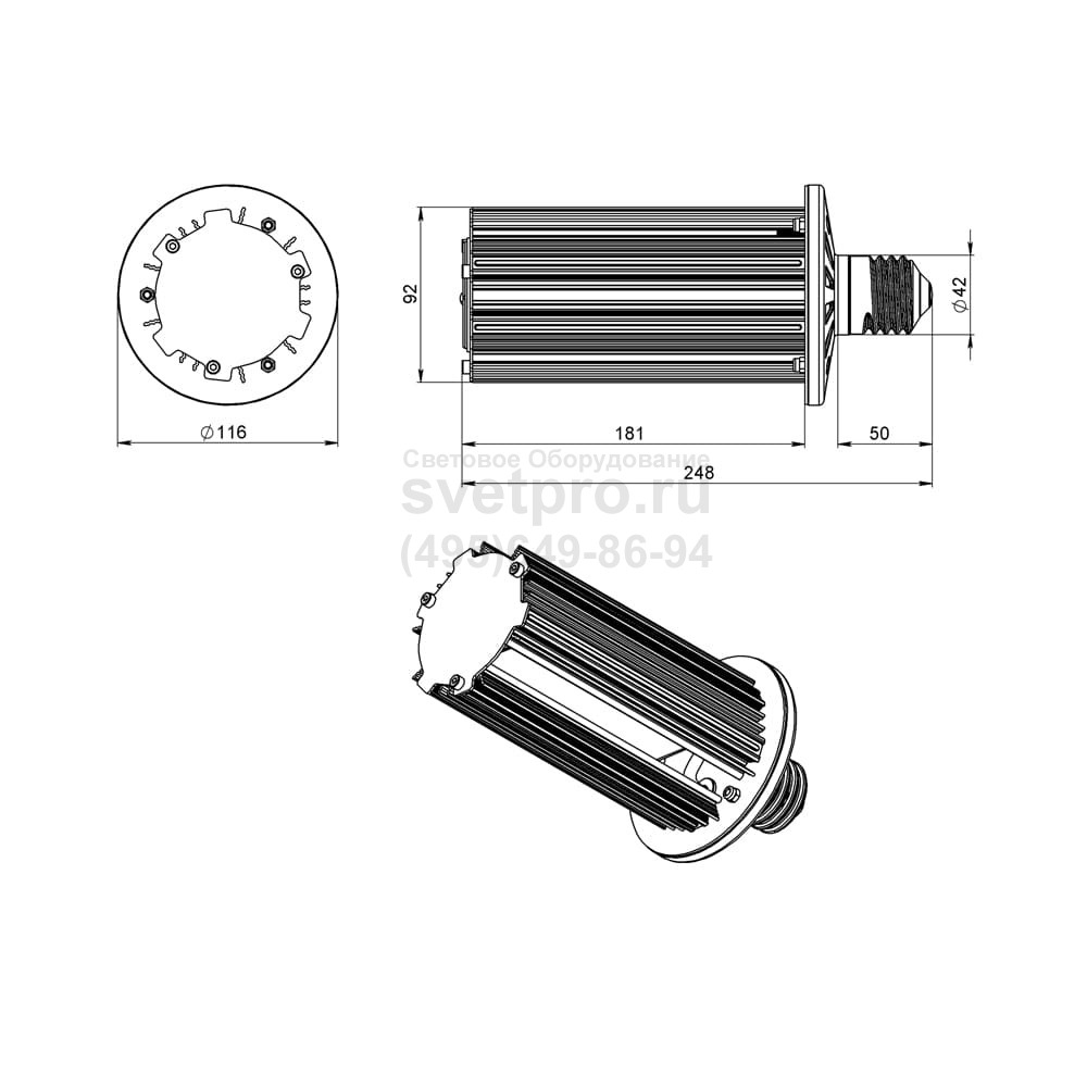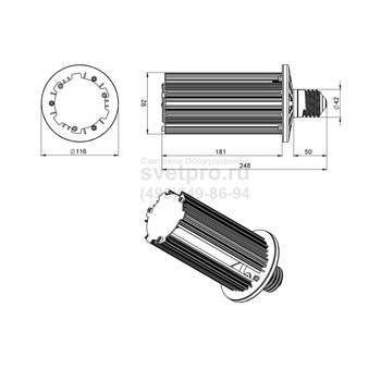 • Корпус лампы выполнен из анодированного алюминия, конструкция которого предусматривает дополнительные ребра и изгибы. За счет них увеличивается площадь теплоотдачи.