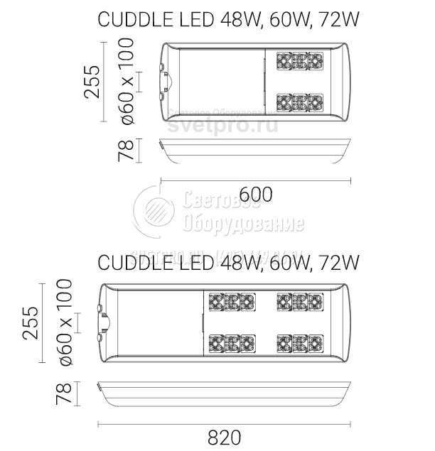 | Количество светодиодов | 24 (для 48 Вт, 60 Вт, 72 Вт) 48 (для 96 Вт, 120 Вт, 144 Вт) |