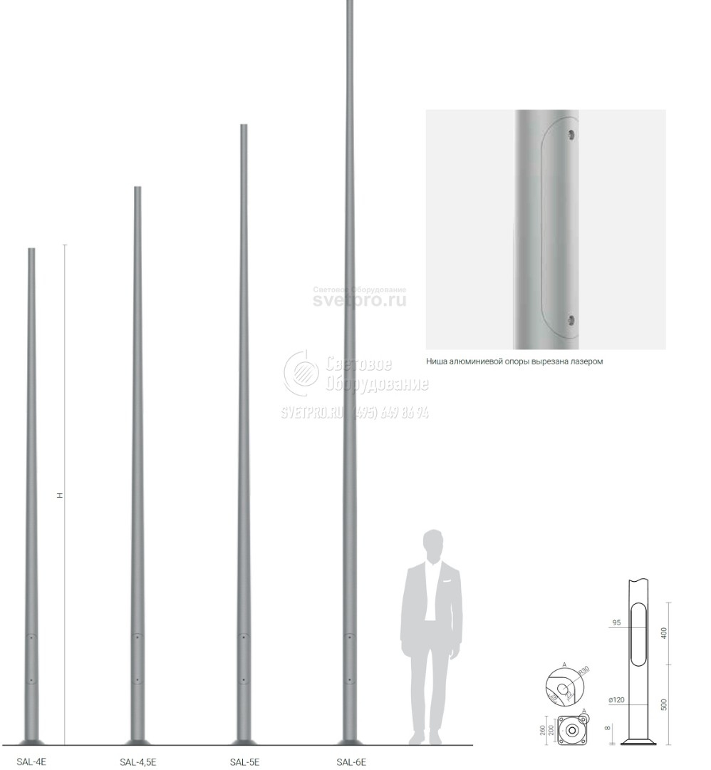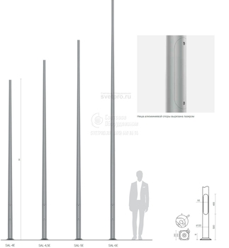 Тип SAL 4E-6E Прямые алюминиевые опоры диаметром 120 мм у основания (грунта)