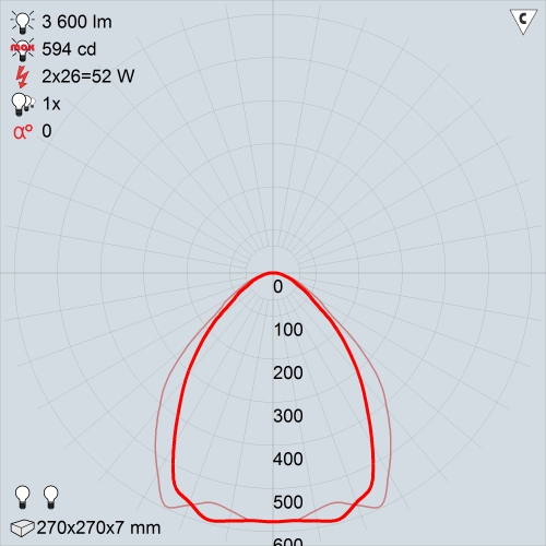 DLK 226 HF | 2 | 52 Вт | ЭПРА | G24q-3 | КЛЛ | 270 мм | 270 мм | 1187000070 |