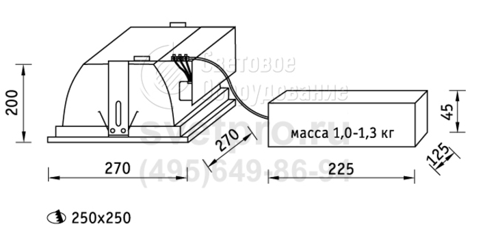 Двухстоечное крепление зеркального отражателя в алюминиевой окрашенной рамке. Пускорегулирующая аппаратура помещена в выносном боксе, электрически связанном с корпусом светильника.