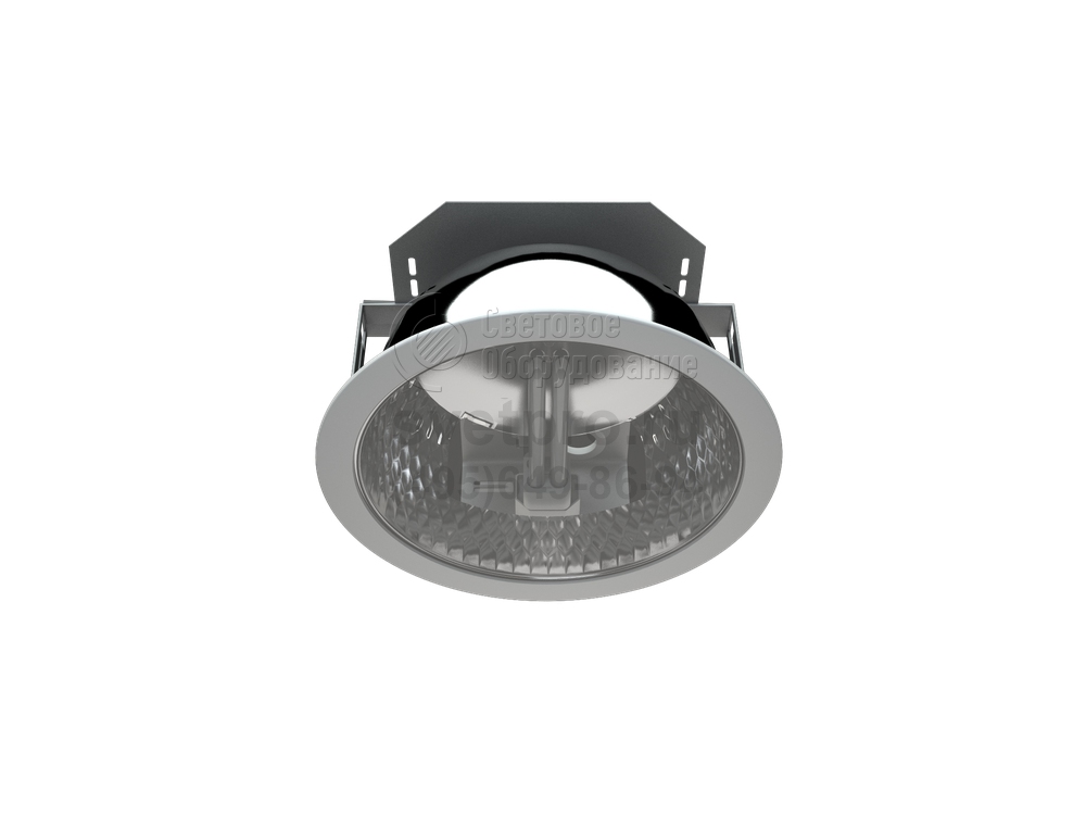Зеркальный отражатель в окрашенном кольце. В одноламповом светильнике пускорегулирующая аппаратура установлена на корпусе (высота светильника увеличивается на 30 мм). В двухламповом светильнике пускорегулирующая аппаратура помещена в выносном боксе, который может устанавливаться как на поверхность подвесного потолка, так и на корпус светильника. В светильниках с ЭПРА пускорегулирующая аппаратура устанавливается на корпусе (высота светильника увеличивается на 45 мм).